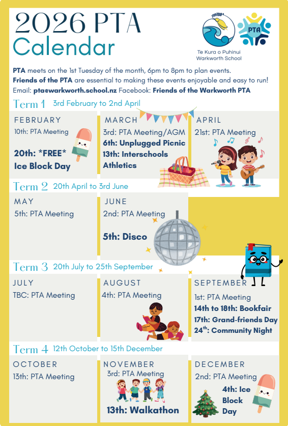 Discover the Friends of Warkworth School PTA on Facebook or join the email database pta@warkworth.school.nz. If you have additional skills, let us know! Your contribution, big or small, makes a difference!